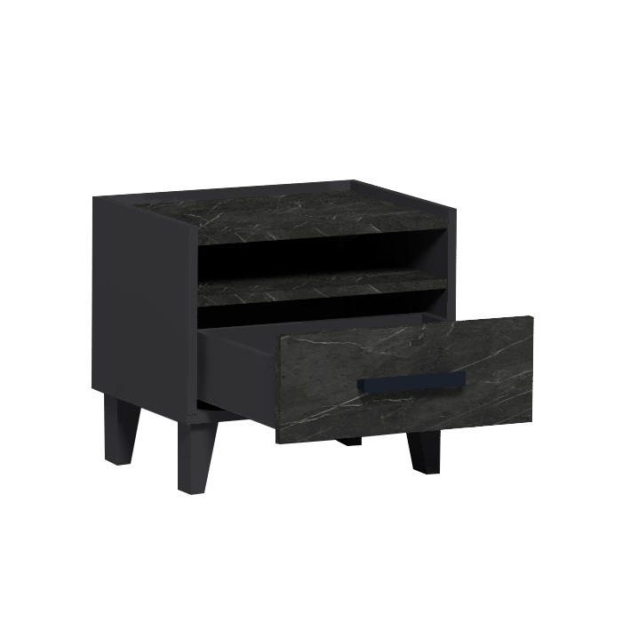 Прикроватная тумба гармонично дополняет мебельный гарнитур в спальне. В поисках тумбы в современном стиле рекомендуем обратить внимание на Айрис. Модель на высоких ножках - это практичное решение для хранения мелочей, которые необходимо иметь под рукой перед сном и с утра после пробуждения. Декор "статуарио" имитирует текстуру камня и прекрасно сочетается с белым корпусом модуля.