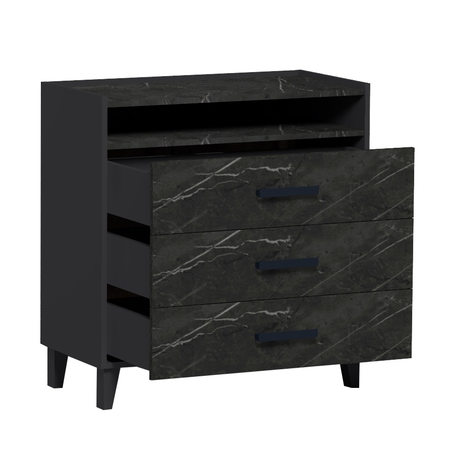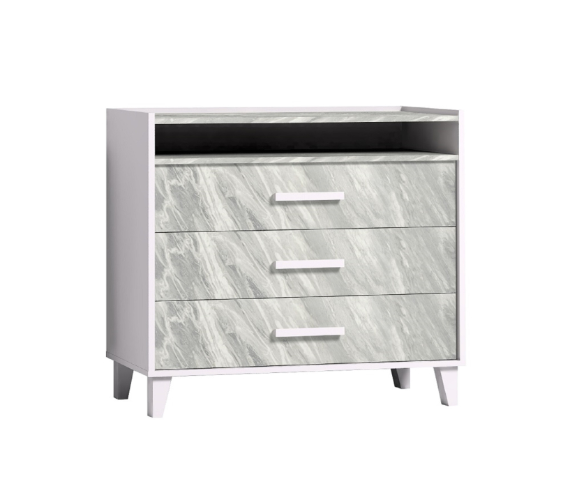 Низкий комод Айрис будет гармонично смотреться в просторной спальне в современном стиле. В трех ящиках на направляющих плавного и бесшумного выдвижения поместятся постельные принадлежности, белье и одежда в сложенном виде. Каждый ящик выдерживает нагрузку до 10 кг.Трапециевидные ручки в том же декоре, что и корпус, изготовлены из массива дерева и удобны для ежедневного использования. Тонкие опоры оптимальной высоты позволят роботу-пылесосу беспрепятственно проезжать под комодом.
