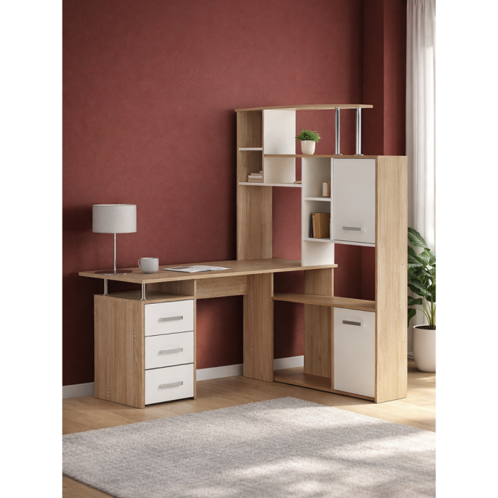 Стол КС15 правый дуб сонома; ЛДСП.Толщина ЛДСП - 16мм. Ящики полного выдвижения на роликовых направляющих. Вместительная конструкция для большого количества вещей. Большая рабочая поверхность