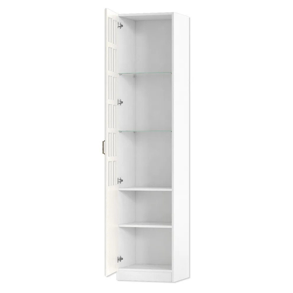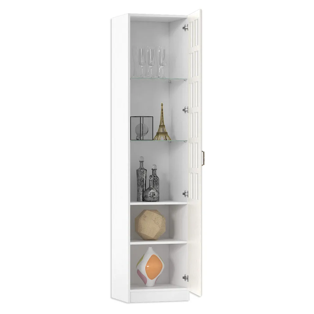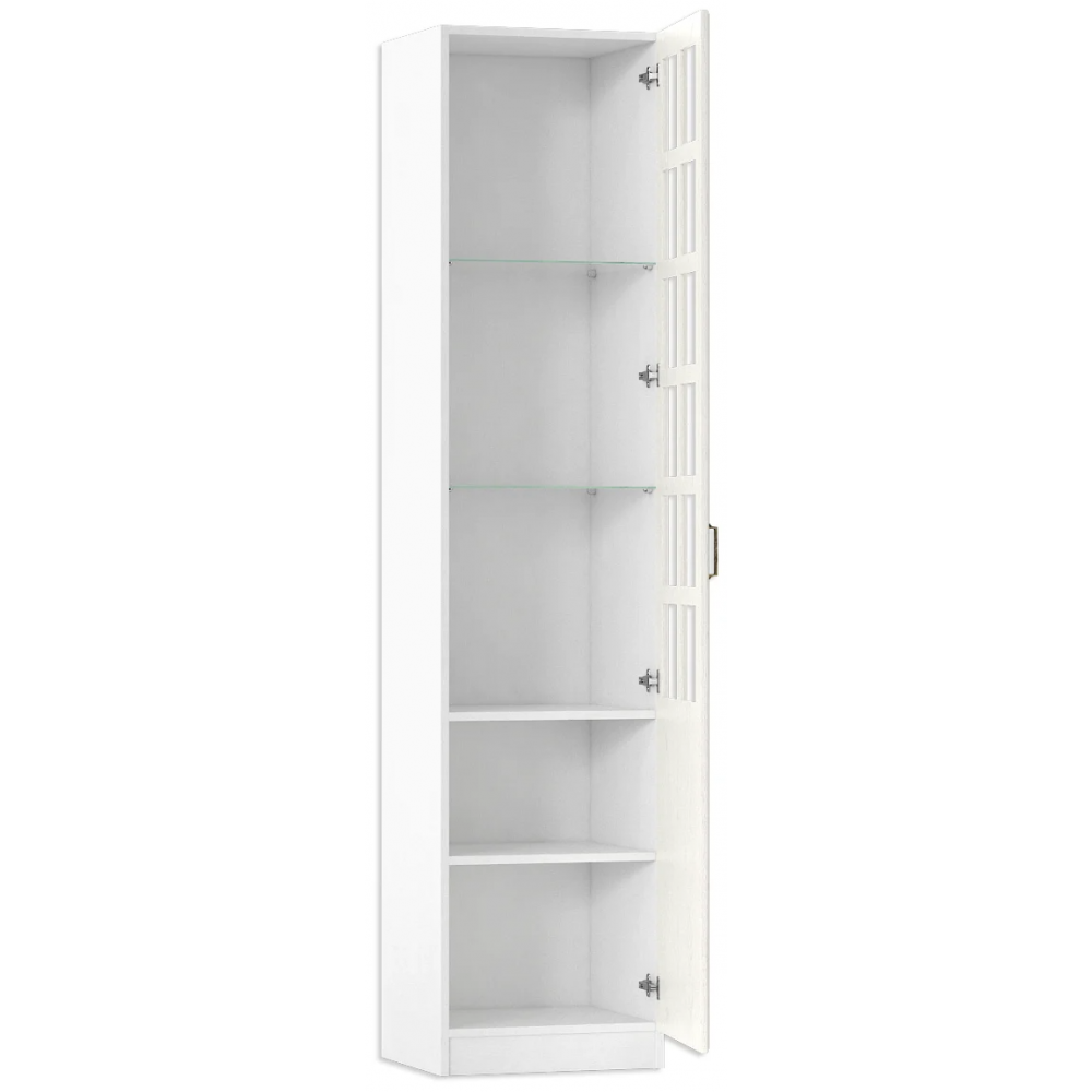 Шкаф Ливерпуль белый / ясень ваниль; ЛДСП. МДФ фасады, прозрачное стекло 4мм. Металлическая ручка. Дверь на 4ёх шарнирных петлях. Универсальная установка двери