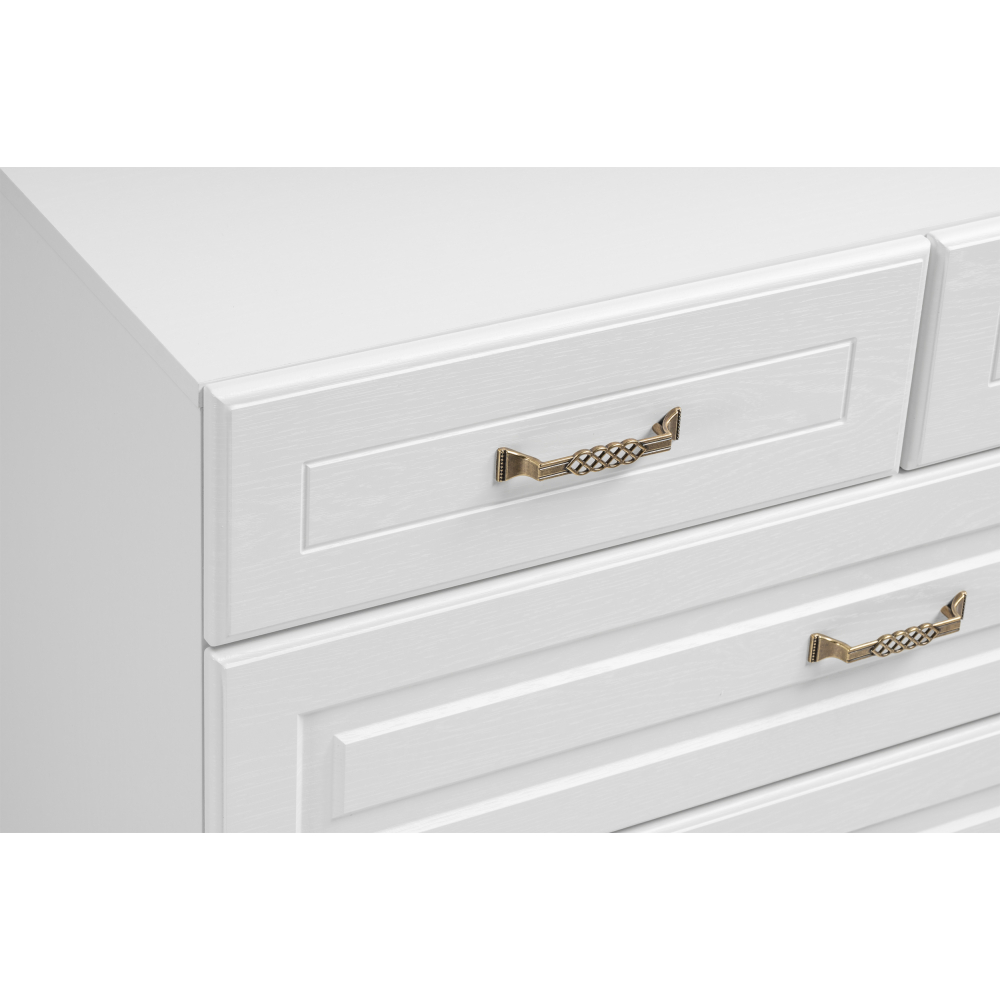 Комод Ливерпуль 10.103.01 белый / ясень ваниль; МДФ, ЛДСП. Имеется 5 вместительных ящиков. Красивый и практичный вариант. Комод подойдёт также и под телевизор. Ручки металлические