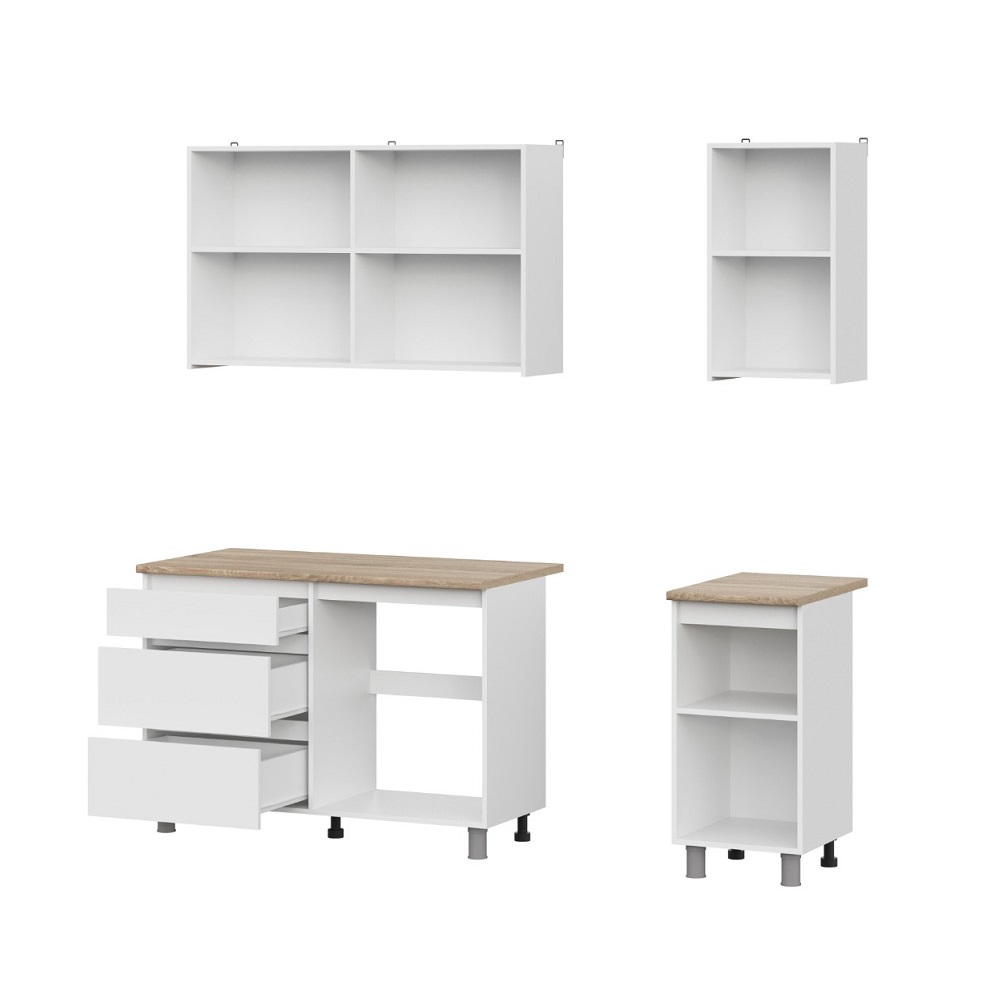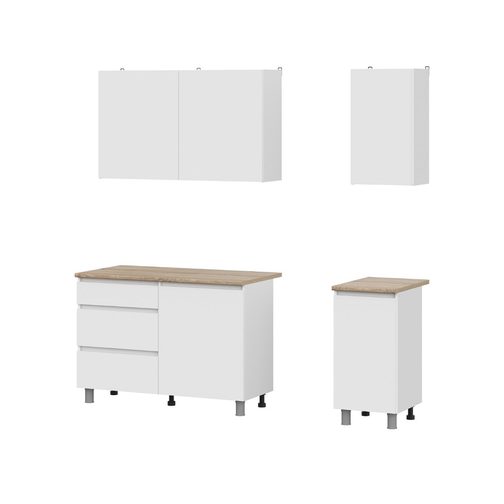 Кухонный гарнитур Денвер - это практичное решение для организации кухонной зоны в малогабаритке или квартире-студии. Состоит их 6-ти удобных шкафов. Два верхних шириной 60 см оснащены распашными фасадами, за дверцей шкафа на 40 скрывается полка. Нижний ряд состоит из модуля под мойку, модуля с выкатными ящиками и глухого шкафа.