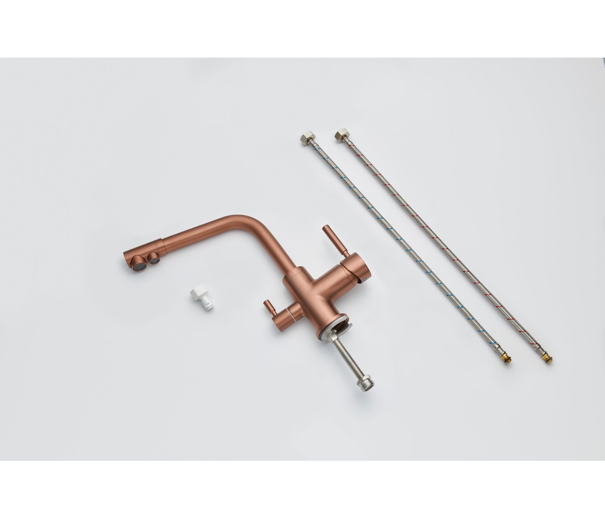 Дизайнерский смеситель для кухни. Смеситель по цвету сочетается с мойками PVD.