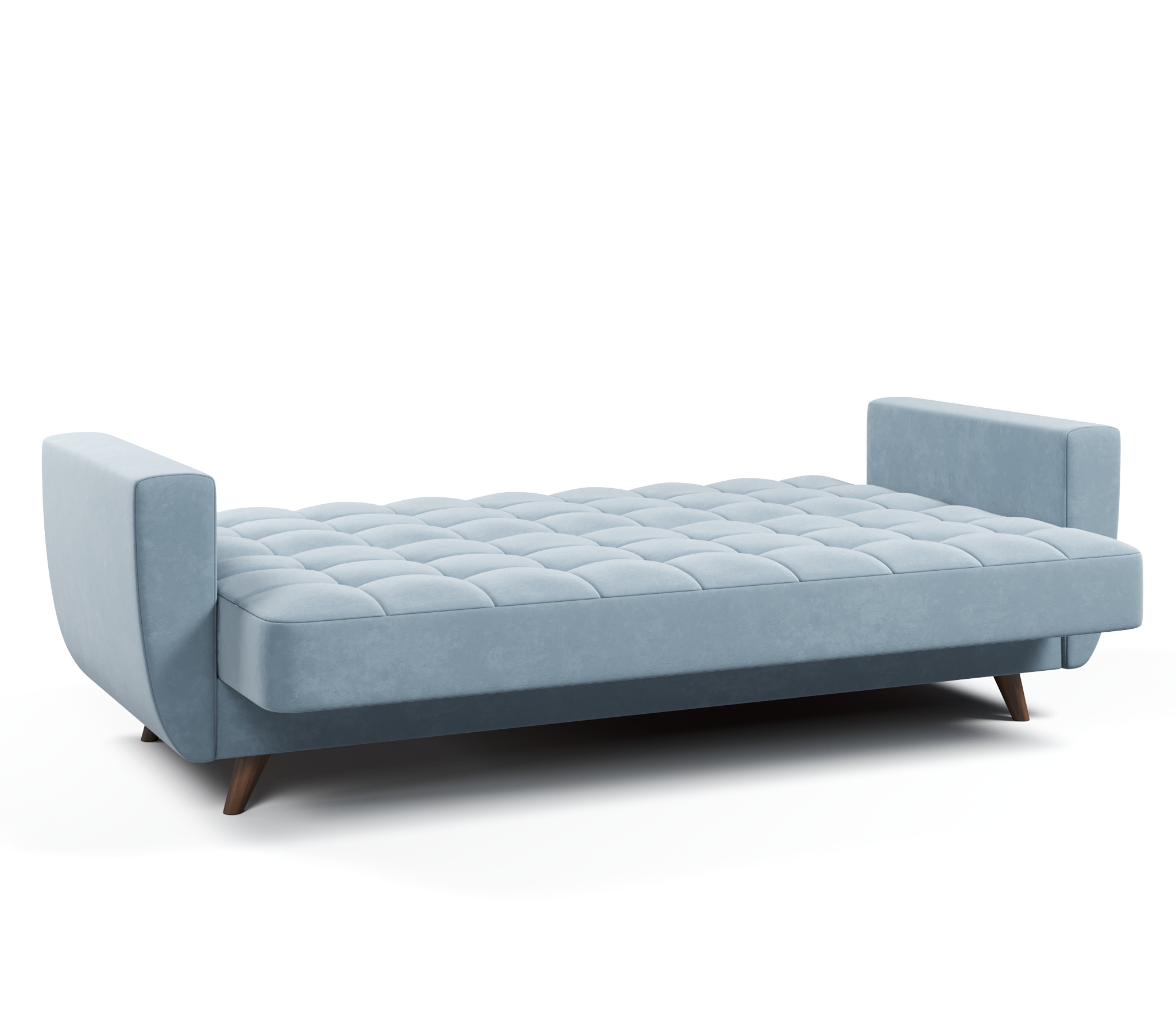 Механизм трансформации. Книжка-очень простой в использовании механизм, с которым справится любой. Для разложения дивана необходимо приподнять посадочное место вверх до характерного щелчка, после чего опустить вниз. При трансформации следует учесть, что для корректного разложения дивана потребуется отступить немного места от стены.