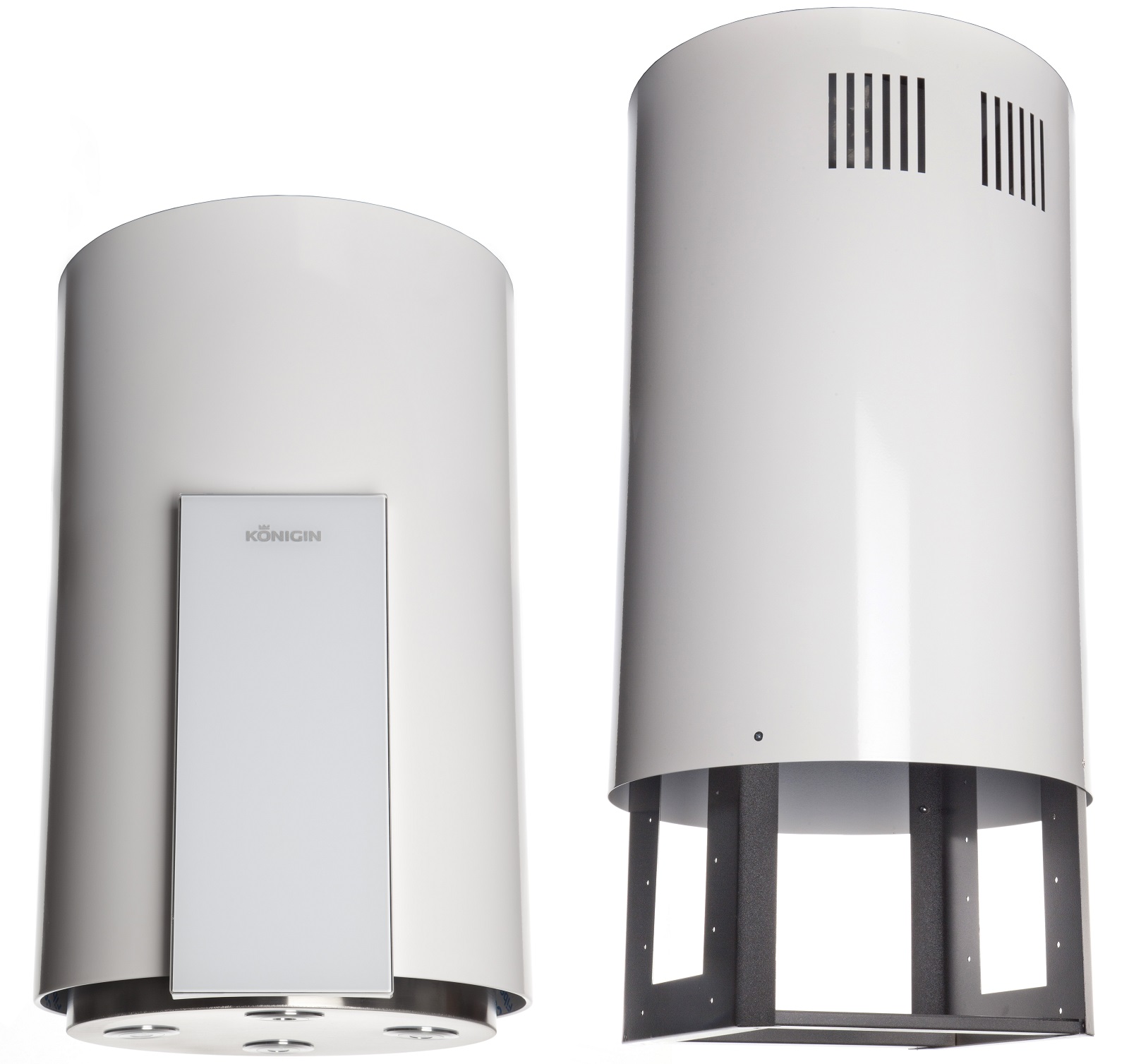 • Островная вытяжка - это уже не только необходимое устройство, но и фантастический элемент интерьера. Сочетания цилиндрического корпуса с прямоугольной панелью управления и круглой декоративной панелью освещения создают стильную геометрию, привлекают лаконичностью и правильностью форм