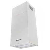 • Дизайнерская островная вытяжка в форме прямоугольного параллелепипеда становится центральным вертикальным элементом, связывающим дизайн кухни воедино. Стильное сочетание нержавеющей стали «сатин» и блеска закаленного стекла создают ощущение легкости прочной конструкции. Декоративный стеклянный люк скрывает алюминиевый, жироулавливающий фильтр, придавая завершенность композиции