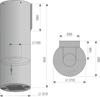 + Вытяжка выполнена в форме цилиндра. Геометрические формы повсеместно используется в современных дизайнерских проектах, они ассоциируются с простотой и лаконичностью, привносят в помещение гармонию и стиль. Стильное сочетание стали и блеска закаленного стекла создают ощущение легкости прочной конструкции. Декоративный стеклянный люк скрывает алюминиевый, жироулавливающий фильтр, придавая завершенность композиции