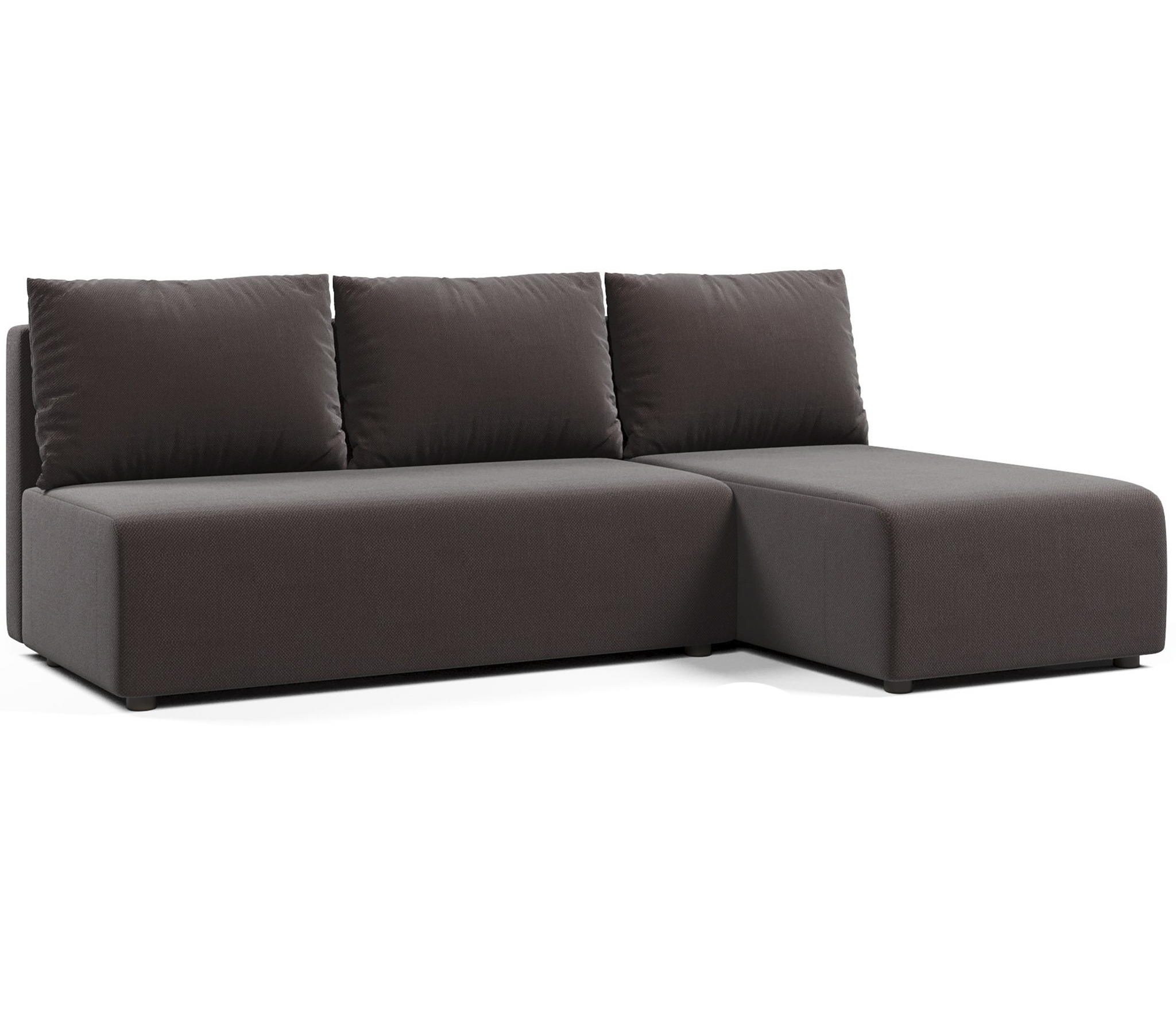 Угловой диван Каир выполнен в минималистичном стиле. Диван подойдет и для маленьких помещений, так как в модели отсутствуют подлокотники, которые сокращают пространство вокруг.