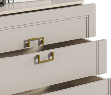 Золотистые ручки и ножки коллекции "Ассоль" добавляют неповторимый шик и изысканность, завершая образ тонким и стильным блеском. Эти акценты создают атмосферу роскоши и утонченности. Они играют роль визуального украшения, дополняя общий вид мебели и придавая ей особый шарм и элегантность.
