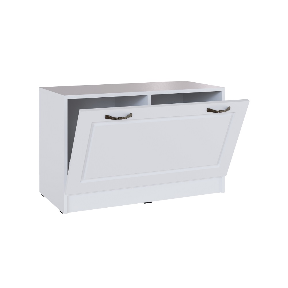 Широкая обувница с откидной створкой. В закрытой нише Вы сможете с удобством хранить несколько пар уличной или домашней обуви. Дополнительная опция - мягкое сиденье, обтянутое искусственной кожей.