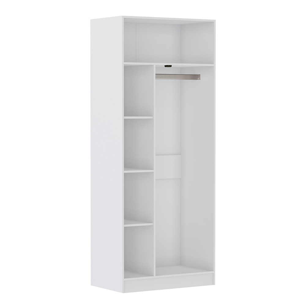 Шкаф для белья и одежды Руэлла оснащен двумя распашными дверцами, за которыми находятся полки для вещей и хромированная штанга для деликатной одежды на плечиках. На верхней полке сможете организовать место хранения для аксессуаров или коробок с сезонными вещами. Гармоничное сочетание цветов корпуса и фасадов идеально впишется в современный дизайн прихожей.