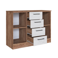 Комод Вегас - прекрасное решение хранения вещей, аксессуаров и белья в спальне. Комод оснащен двумя створками с полкам и четырьмя выдвижными ящиками. Лаконичный дизайн и простые формы впишутся как в яркий, так и в спокойный дизайн комнаты.