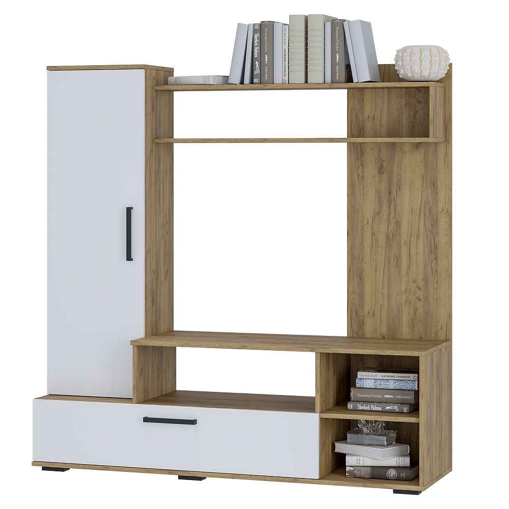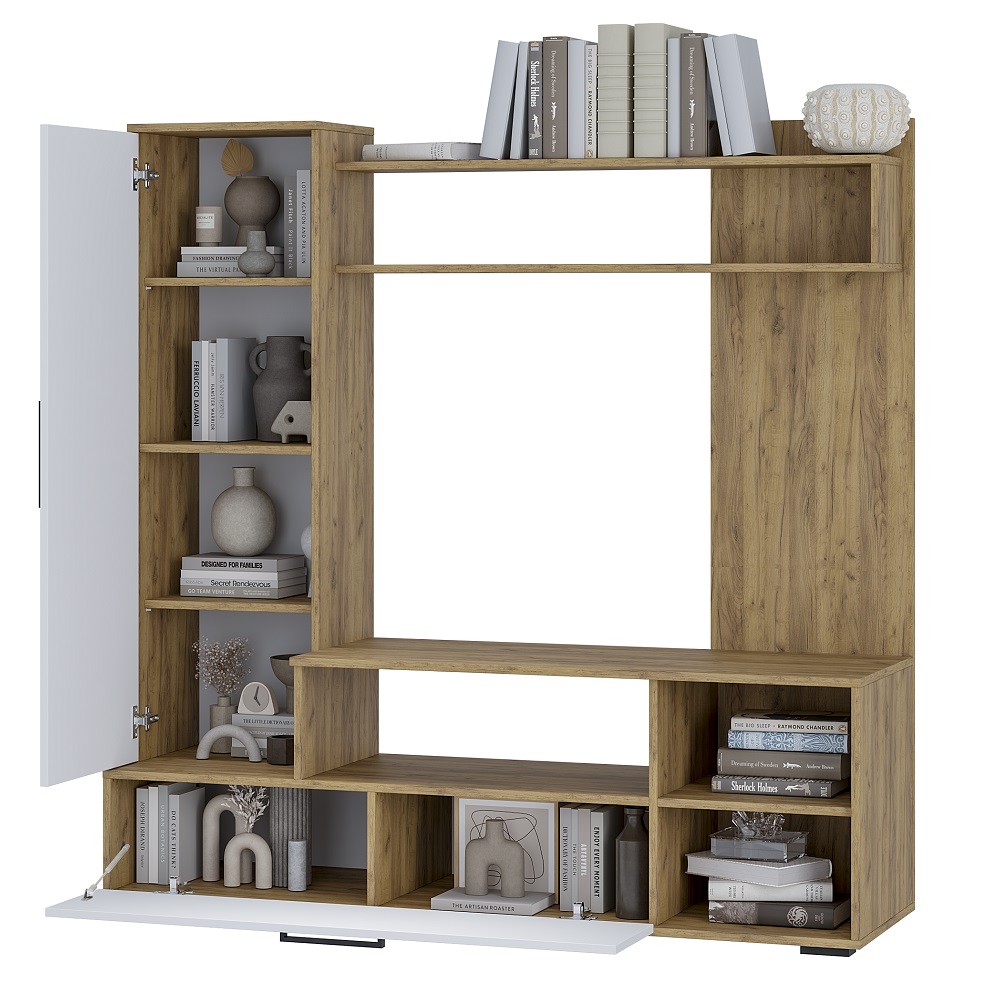 Мини-гостиная Евро-2 – отличный выбор для небольшой комнаты или квартиры-студии. Конструкция стенки обеспечит хранение всех необходимых в гостиной вещей: телевизора и сопутствующей техники, книг и журналов, коробок с вещами и предметов декора.
