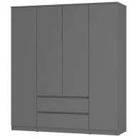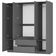 Мечтаете о большом вместительном шкафе, в который поместятся одежда на плечиках, вещи в сложенном виде, аксессуары и другие вещи? Обратите внимание на шкаф Симпл ШК-13. Наполнение модуля - две закрытые ниши, три стационарные штанги и два выдвижных ящика. Цветовая гамма шкафа визуально увеличит пространство и позволит вписать модуль в любой современный интерьер.