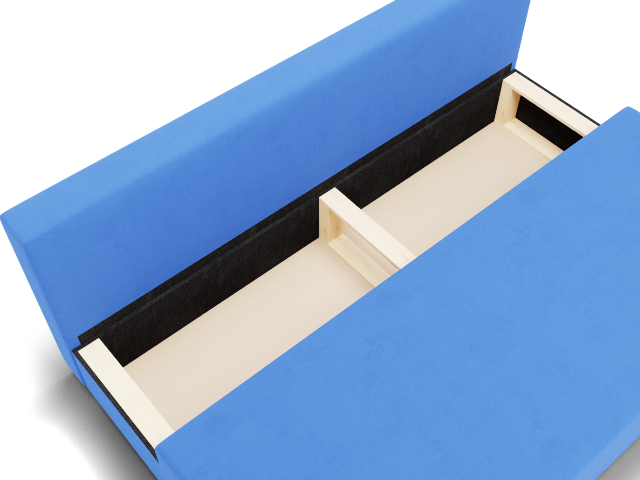 Материал каркаса дивана-кровати изготовлен из ДВП, ЛДСП и массива дерева, что обеспечивает прочность и долговечность. Наполнитель выполнен из пенополиуретана, что делает диван мягким и удобным для сидения.