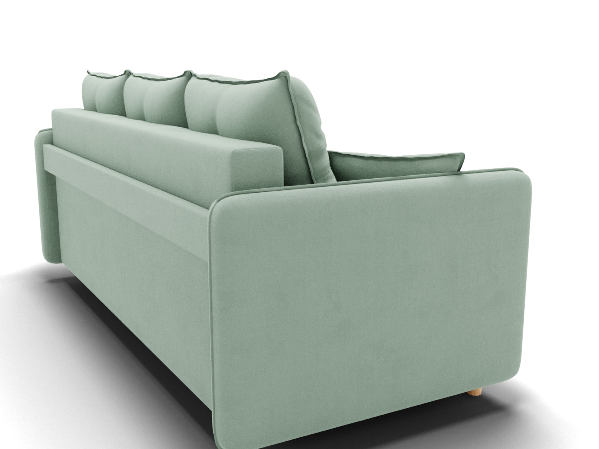 Диван-кровать оснащен механизмом трансформации "еврокнижка" и ящиком для хранения белья. Обивка выполнена из мягкого и приятного на ощупь велюра. Цвет дивана "фисташковый", что делает его универсальным и гармоничным для многих интерьеров.