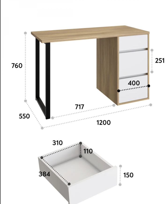 Стол письменный С-401 позволит создать комфортное и стильное рабочее пространство в офисе или домашнем кабинете. Стол С-401 можно использовать в качестве маникюрного стола. Стол имеет прочную стальную опору и тумбу с тремя выдвижными ящиками. Столешница изготовлена из ЛДСП 25 мм. Стол может быть собран в зеркальном варианте «правым» или «левым». Фурнитура: телескопический направляющие полного выдвижения без доводчиков, опора металл.