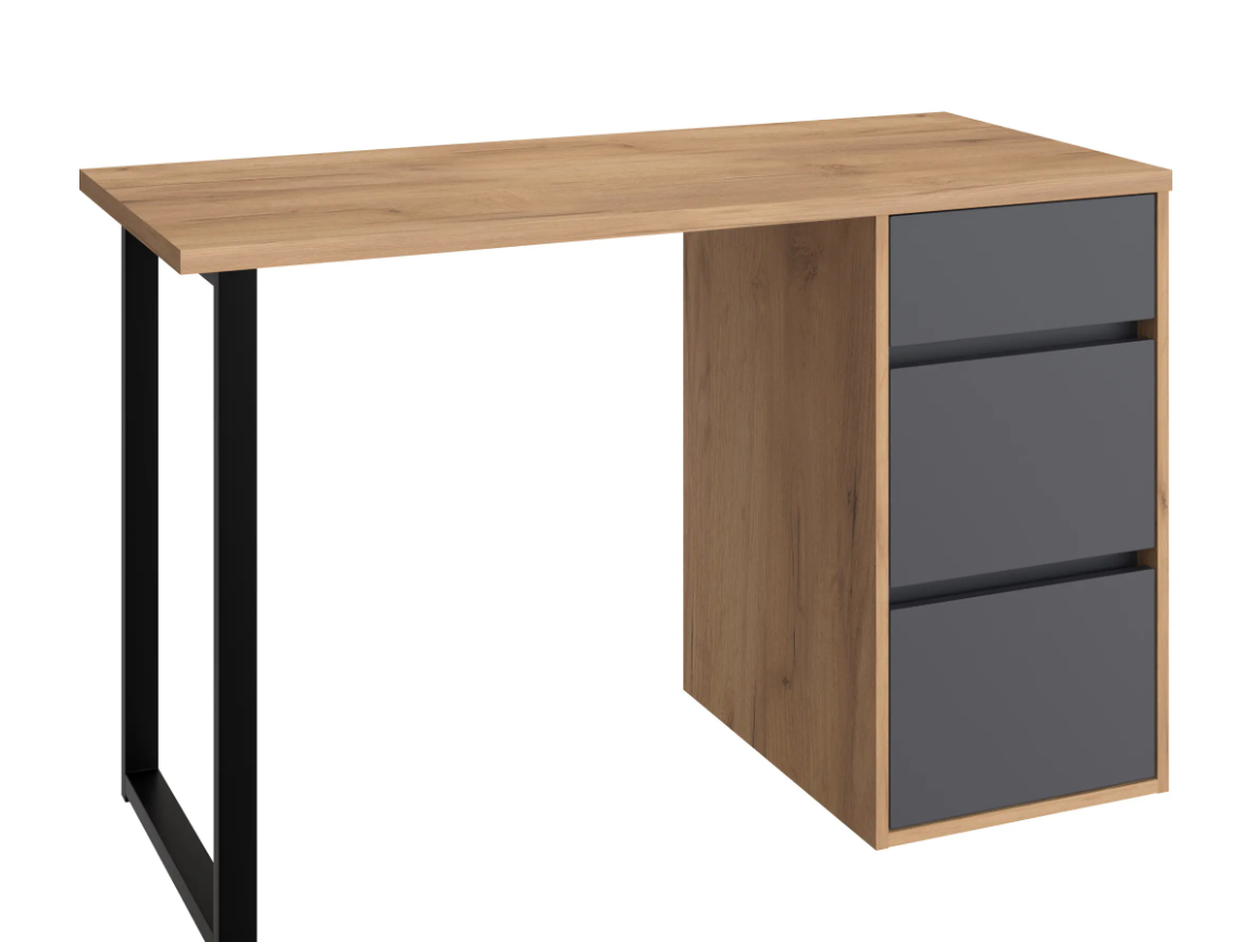 Стол письменный С-401 позволит создать комфортное и стильное рабочее пространство в офисе или домашнем кабинете. Стол С-401 можно использовать в качестве маникюрного стола. Стол имеет прочную стальную опору и тумбу с тремя выдвижными ящиками. Столешница изготовлена из ЛДСП 25 мм. Стол может быть собран в зеркальном варианте «правым» или «левым». Фурнитура: телескопический направляющие полного выдвижения без доводчиков, опора металл.
