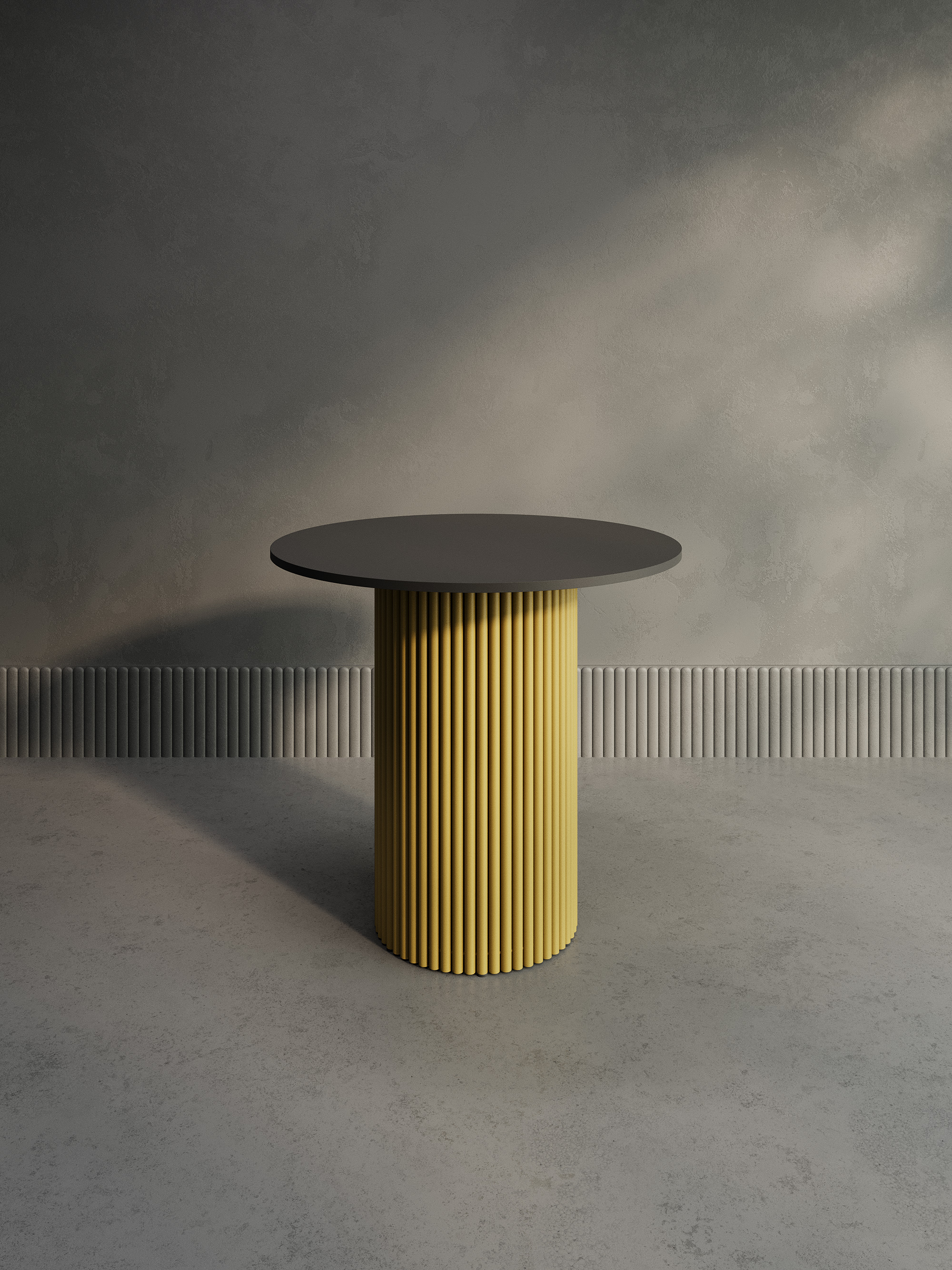 Дизайнерский круглый стол с металлическим трубчатым подстольем. Диаметр подстолья D400 мм. Столешница ЛДСП 16мм, диаметр D800 мм. Стандартный вариант - матовая порошковая окраска в золотой, чёрный или белый цвет. На заказ возможно изготовление столешницы ЛДСП в индивидуальном цвете и размере под заказ.