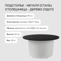 Отзывы о Столплит Стол круглый журнальный с белым металлическим подстольем TRUBIS Wood M 80 Черный