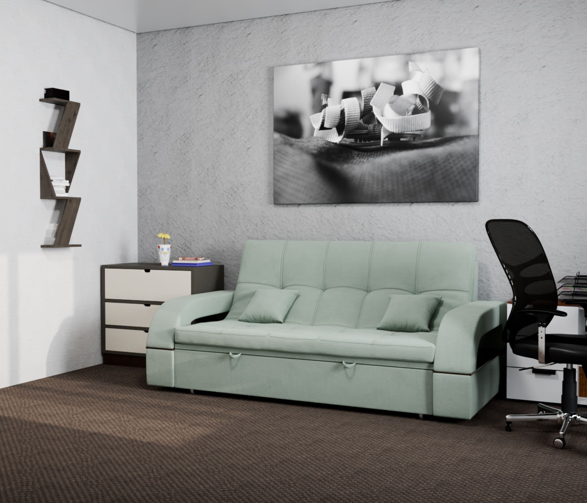 Диван "Майами-1" оснащен механизмом трансформации "Венеция", который позволяет быстро и легко раскладывать его в кровать. Этот механизм обеспечивает комфортное и удобное спальное место.