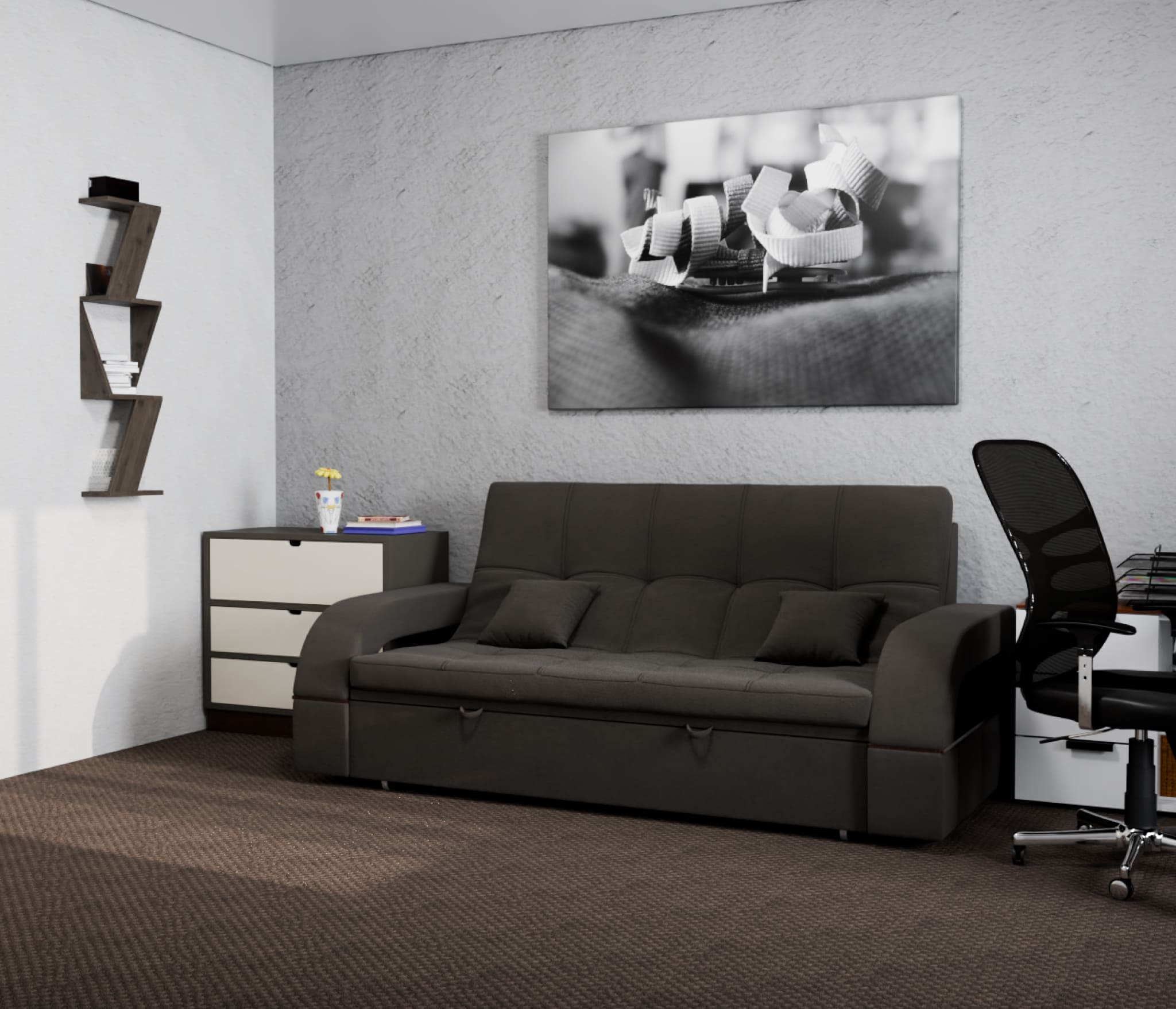 Спальное место имеет ширину 135 см и длину 185 см. Он предназначен для двух человек и имеет глубину сиденья 65 см. Максимальная нагрузка на диван составляет 280 кг.