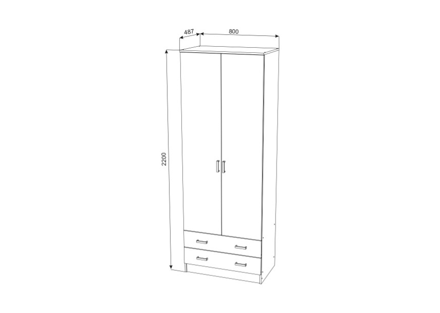 Шкаф имеет удобные размеры: высота 2200мм, ширина 800мм, глубина 487 мм. Такие пропорции обеспечивают достаточно места для хранения, при этом не нагружая пространство в комнатах.