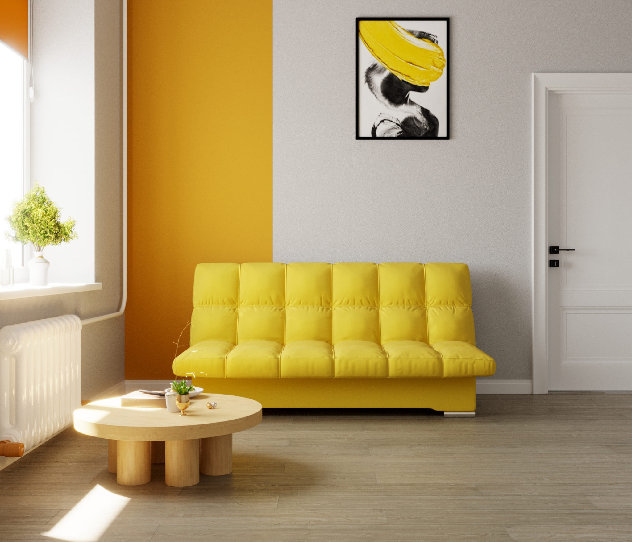 Прямой диван Финка,книжка,велюр (Желтый) Код I0000386594